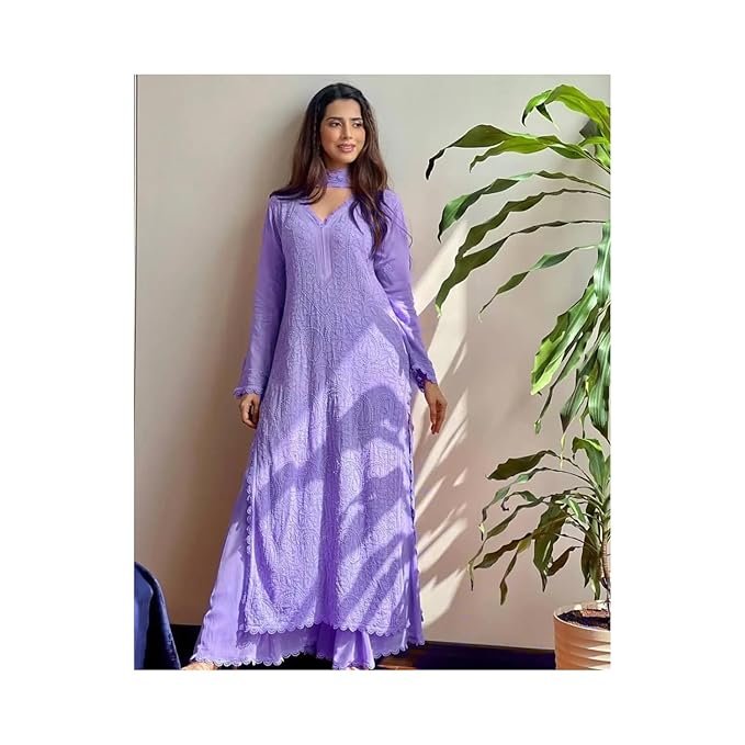 Elevate your ethnic wardrobe with this versatile suit set that suits a myriad of occasions. Whether it’s a wedding function, a festive gathering, or a traditional celebration, the ANAGH APPARELS Women’s Lavender Faux Georgette Chikankari Embroidered Suit Set ensures you look impeccable at all times. It’s truly a perfect choice for women seeking stylish yet comfortable ethnic fashion.