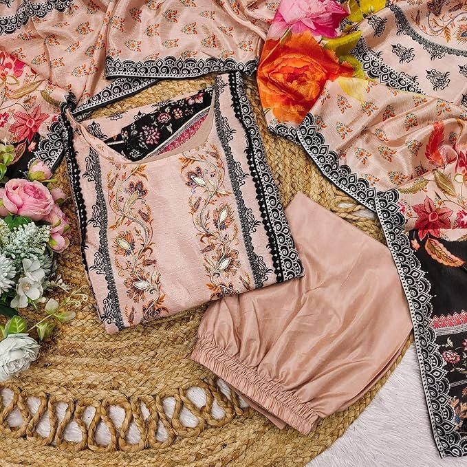Step into ultimate sophistication with the ANAGH APPARELS Women’s Chinon Salwar Suit Set. Designed for women who embrace tradition with a touch of modern flair, this 3-piece kurta set features an exquisitely hand-embroidered digital print and intricate sequins that radiate festive charm. Whether you’re attending a wedding, family celebration, or cultural event, this salwar suit set perfectly encapsulates grace and grandeur.