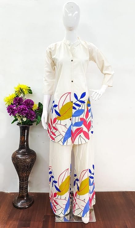 Rediscover the joy of effortless fashion with the ANAGH APPARELS Women’s Cream Cotton Printed Co-ord Set—a statement piece that will make you feel confident while staying comfortable throughout the day.