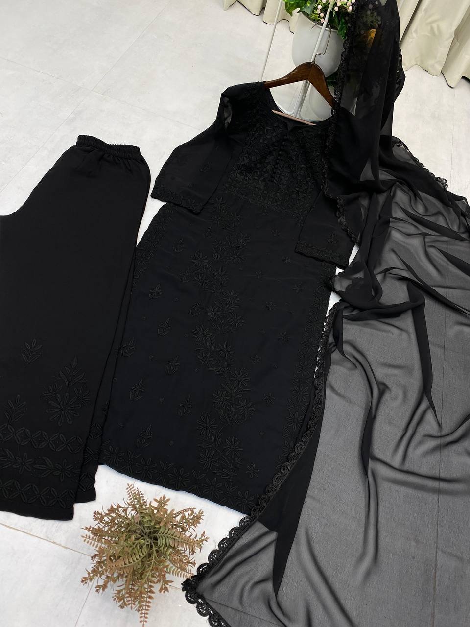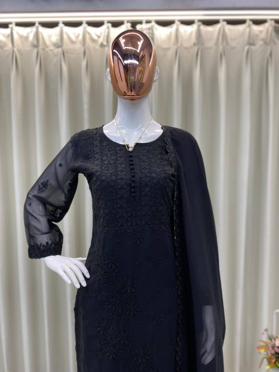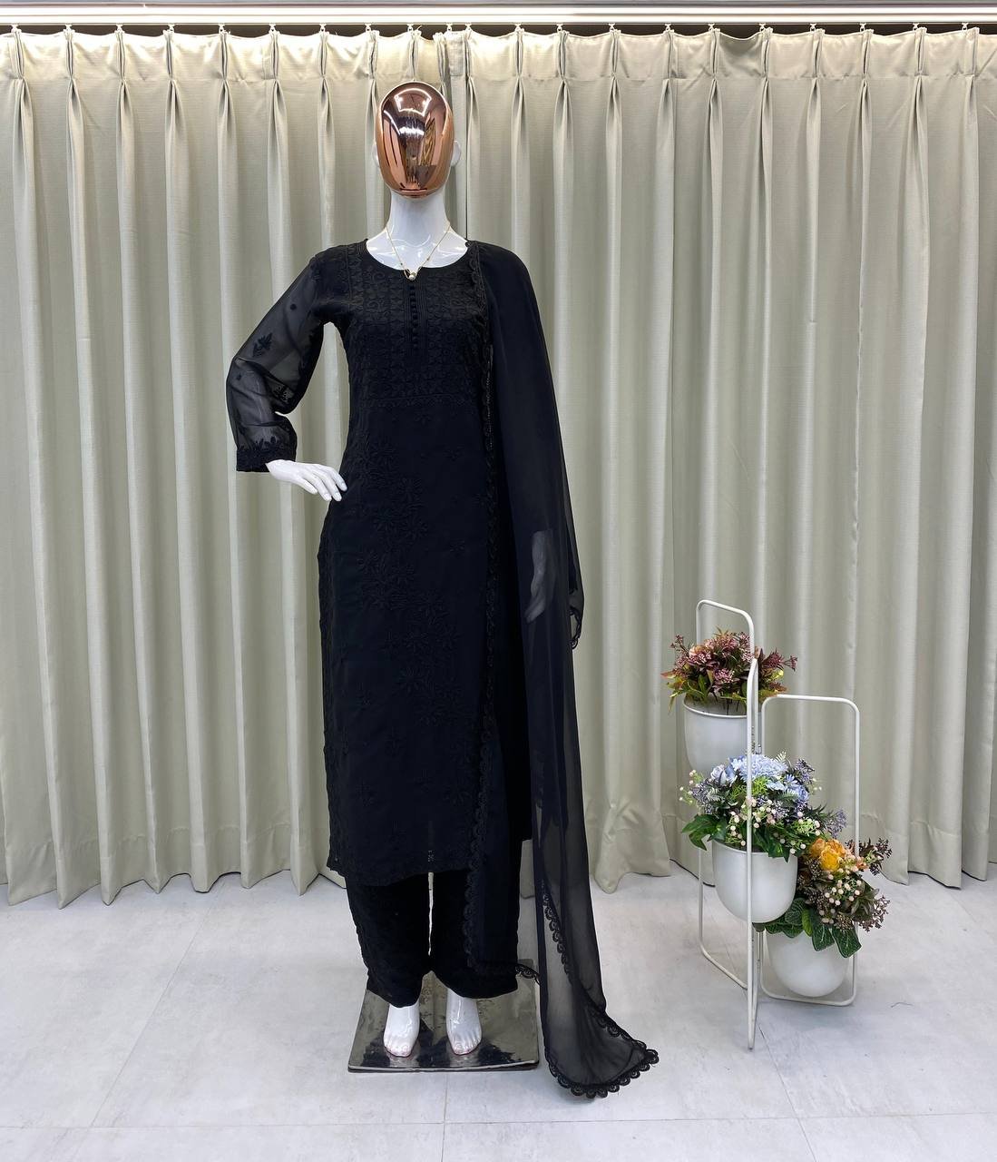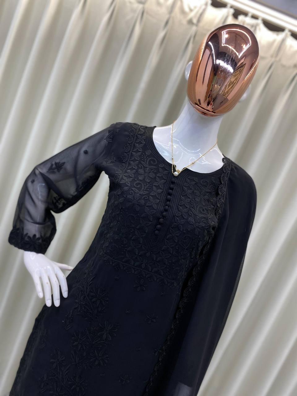 DESIGNER WEAR – EXCLUSIVE GEORGETTE EMBROIDERY SUIT WITH DUPATTA (Black)