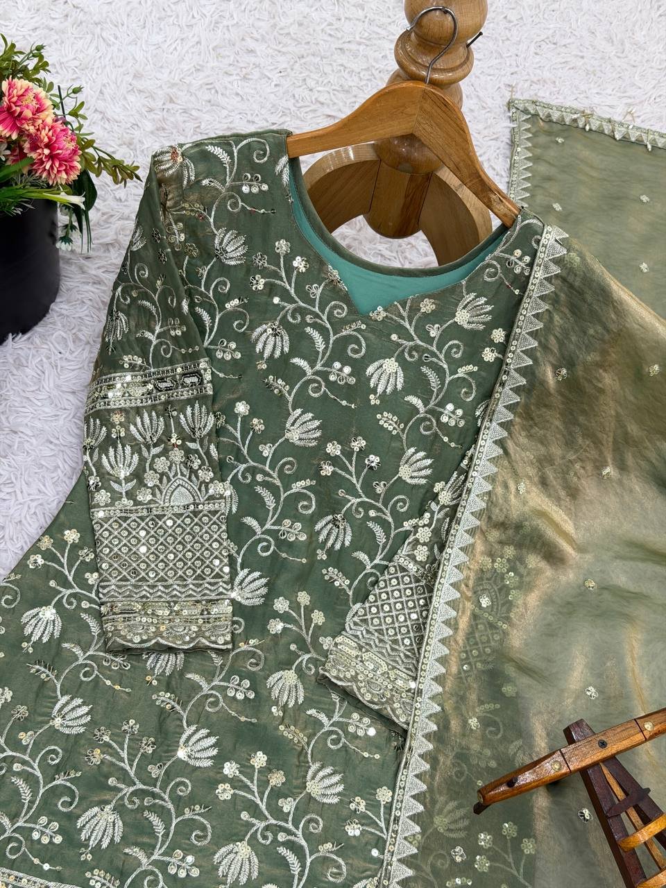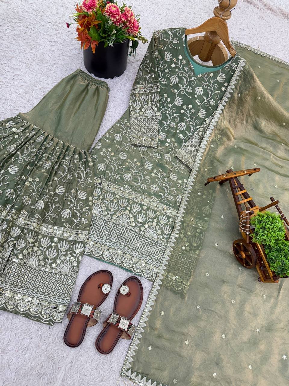 Heavy Embroidery Sequence Work Top–Sharara & Dupatta Set | Fully Stitched | Ready to Wear