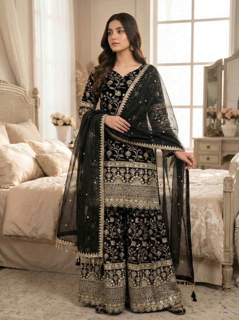 Heavy Embroidery Sequence Work Top–Bottom & Dupatta Set | Fully Stitched | Ready to Wear
