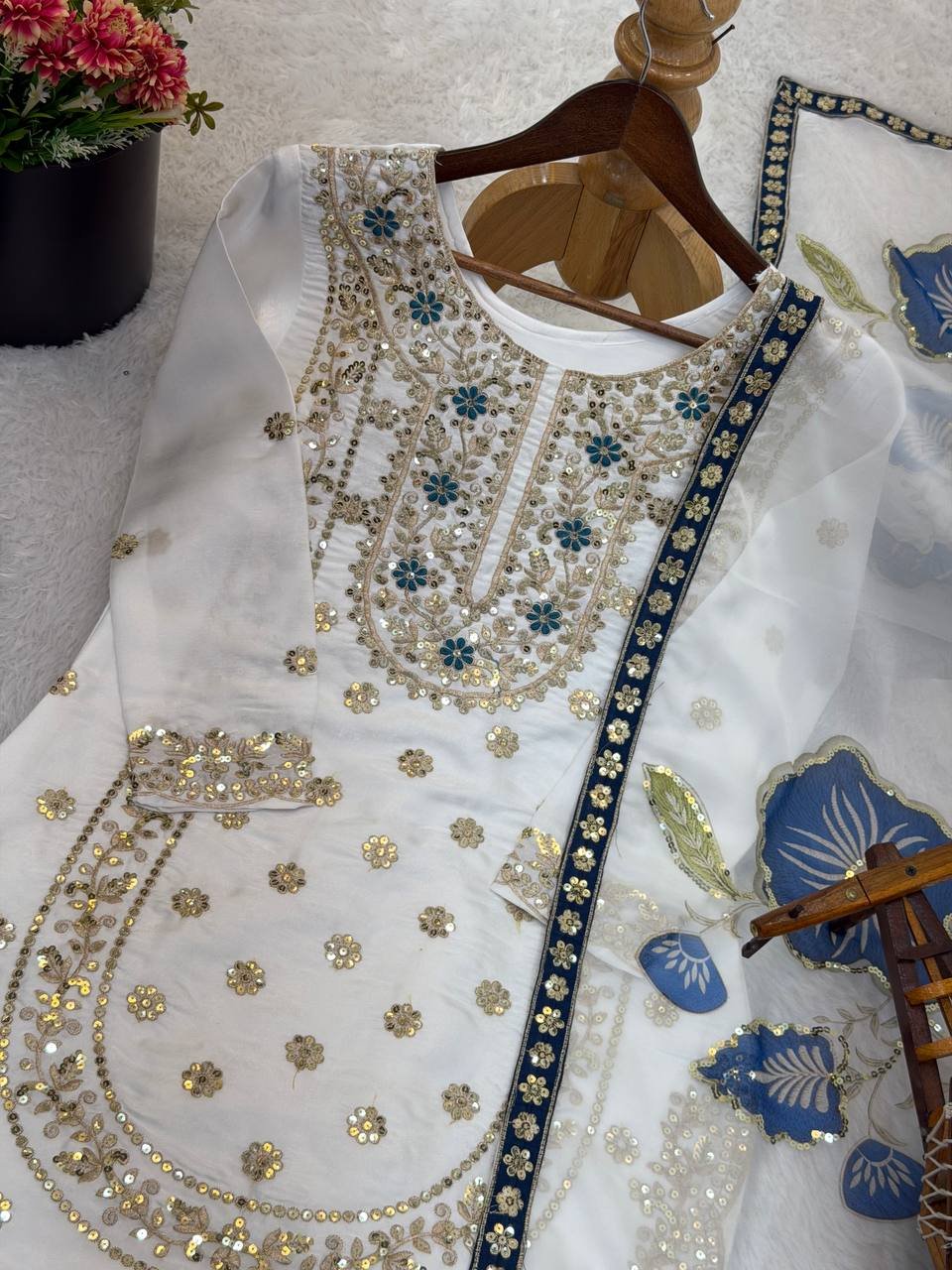 Heavy Embroidery Sequence Work Top–Bottom & Dupatta Set | Fully Stitched | Ready to Wear